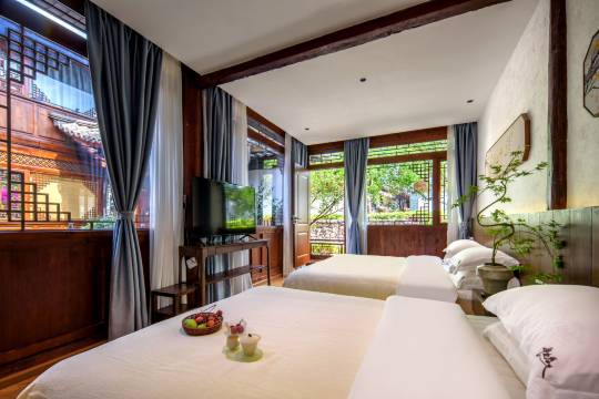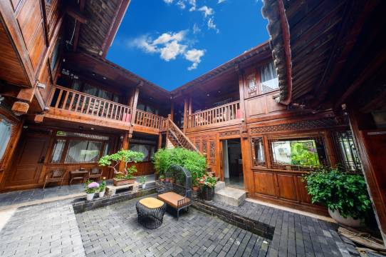 打造的丽江高端民宿。由前后两院组成,前院是智慧中古风装修,旨在为客户提供高品质住宿服务,后院为传统纳西庭院,保留了纳西庭院中三房一照壁,和传统手工木雕的建筑风格。每间客房面积均达到30-50平,配有餐厅、图书室、会议室、茶室。让贵客在本店享受多维空间使用,同时可承接文化沙龙、禅修、茶会等文艺活动。