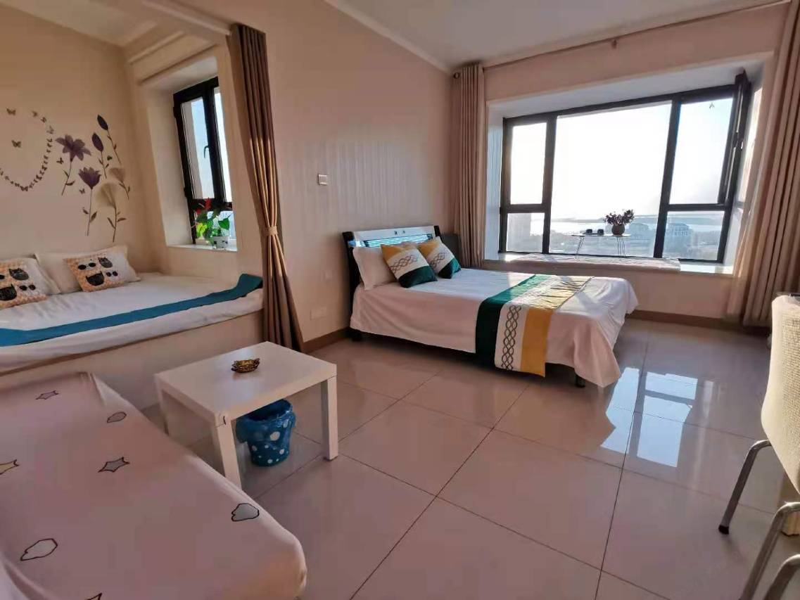 店家性质属于民宿,在26层高楼之中,房间窗户面相渤海湾,晴天视线好的话,可见到黄渤海分界,夜晚海边世界和平公园,夜景不错。店家服务热情,客房卫生尚可,价格不贵,房间内配置基本齐全并动能良好。楼前有一公共免费停车场,也可化20元/24小时小区楼下负一层停车场,停在楼下,停车是没有什么问题的。店家不配备早餐,可通过**预订或下楼到早餐店解决,楼下各种风味餐馆小吃齐全,生活还是配套的。就住了几天,总体感觉还不错。