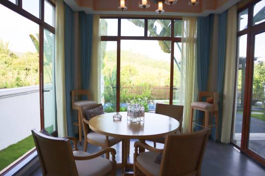 在度假区里面,周围环境很安静。适合一家人去住。基础设施齐全。推荐~