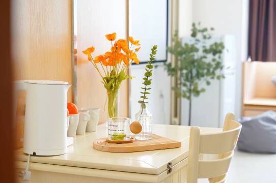 客厅配有全新大屏幕投影仪,高端沙发,Wi-Fi,茶具,空调,精致的家具让您享受其中。房间配有电磁炉、微波炉、电水壶、厨具、餐具、清洁用品一应俱全,方便您一展身手,一家人煮煮海鲜,小酌微醺,与朋友家人分享美食,方便惬意。卫生间提供24小时热水,免费提供毛巾、浴巾、洗发水、沐浴露、拖鞋、牙具、洗手液、吹风机满足您的洗漱需求。民宿使用智能密码锁,自助入住方便安全,无人打扰!