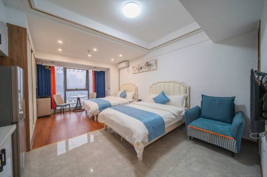 房间宽敞舒适,楼层高视野很好,房间很干净,每天都有阿姨打扫,有洗衣机冰箱,鞋柜衣柜晾衣架,类似单身公寓的装修,楼下有生活超市,马路对面有商圈,地铁步行十分钟,超级方便,最好的评价是:下次来还住这里!