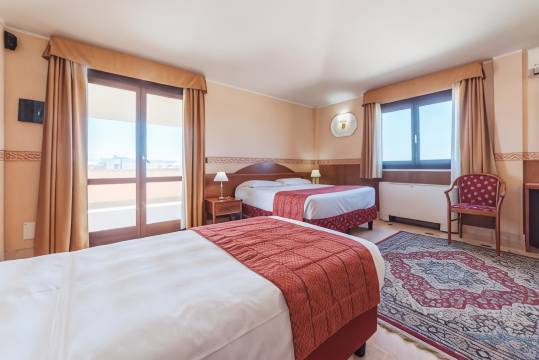 在从菲乌米奇诺机场出发前,我们在这家酒店停留了两晚,作为一次“长途转机”的住宿。尽管位置有点偏僻,但离海滩很近。我希望我们的房间(尤其是浴室)能再大一点,不过房间很干净,而且有空调(这在七月可是最重要的)。周围没有杂货店。前台附近有一台自动售货机,以防你需要水或其他东西。酒店内有私人停车场。