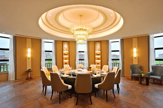 酒店环境很好,湖水萦绕,绿树成荫,散步小憩两相宜。酒店设施很新,大堂气派,客房类型也多,有标准客房(庭景园景)及别墅,每个房间面积很大,可以根据个人需要选择。酒店内还有宠物,形态可掬,小朋友很喜欢。酒店服务很周到,自助早餐食材新鲜,口味也不错,点赞👍