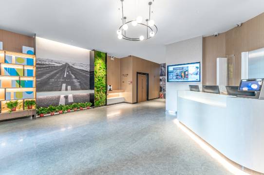 你好酒店,位于济宁市任城区建设路38号,紧邻地万达商业广场,酒店以“百分百一天”作为设计理念,用热情的色调搭配表现出从日出到日落,酒店大堂与客房设计感与科技感十足,配备了自助入住系统&智能客房系统更加彰显年轻色彩,客房内采用的轻松明快的色调,实现科技与艺术的完美融合,更配有优质的床品,高档的床垫提供您舒适好睡眠为您拭去一路的疲惫风尘,客房所有房间无线覆盖,24免费上网,周边设施配套齐全,“你好“将全天候为住客提供性价比的服务,用最温暖的名字,打造最温暖的港湾.恭候您的光临“你好酒店“一个不错的选择.