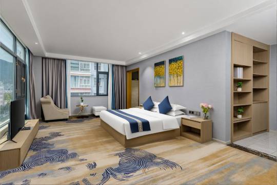 拥有多种客房,房价内设施齐全,干净整洁。智能感应灯,智能听歌系统等智能设施带给您新的体验,消去您满身的疲劳,我们将以热情的服务,舒适的房间,期待您的到来。