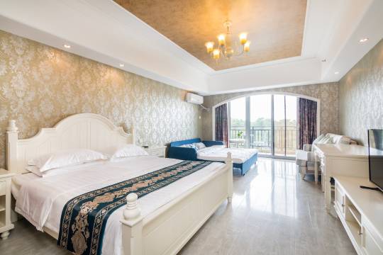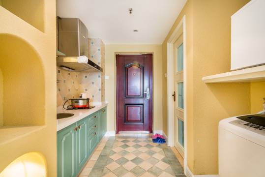 院内私属海滩(免费)、水清沙细、儿童娱乐设施齐全(免费),有游泳池群(免费),公寓是北戴河阿尔卡迪亚的配套公寓,在同一院内,与酒店共同享用免费私属海滩、免费游泳池群、免费儿童娱乐设施,,但享受的资源是完全相同的,想要了解公寓的环境、设施,请在网搜索北戴河阿尔卡迪亚公寓。房间内有一个1.8米大床、1.8米折叠沙发床(硬体床垫,很舒服),有厨房和炊具可以做饭,有洗衣机电冰箱等家电齐全,从房间到海滩步行五分钟,坐电瓶车两分钟。