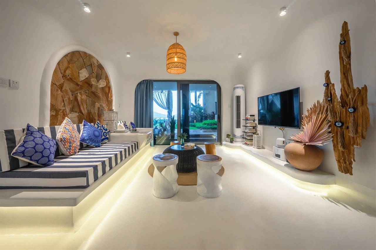 中国影视著名制作人郭一林女士是公寓的投资及经营者,为了给心怀影视梦想的旅人提供【别“居”一格】的度假体验,郭女士力邀著名影视舞美设计团队耗时两年,将舞美艺术融汇至现代建筑设计中,倾力打造了多套以独立影视剧目为主题,风格迥异且奢华舒适的全海景套房,每一间客房都配有可私享壮阔景观的独立阳台,并配套法式曲线的浴缸,让您面朝大海,享受宁静舒适的SPA;当玫瑰金、樱草粉与茄子紫晕染的黄昏来临时,原装进口品牌沐浴套装早已准备好伺浴,而夜晚的繁星即将闪亮登场,睡眠专家“慕思”床垫即将为您优质睡眠体验保驾护航。