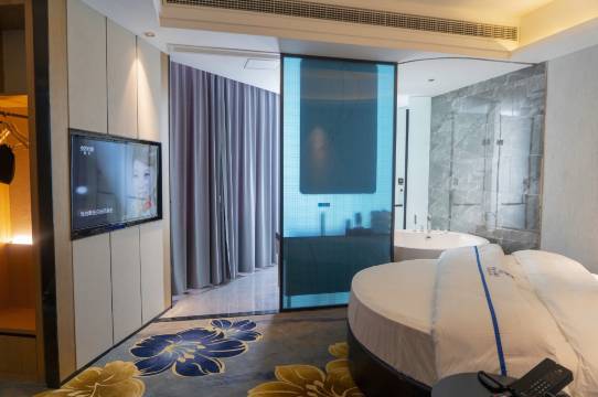 酒店水冷式中央空调,环保,健康,酒店设有多种风格客房,有日式榻榻米风格,零压体验现代风格,简欧圆床风格;是一家AI语音交互式全智能酒店,极速百兆光纤免费上网。睿柏·云酒店全体员工将用心、用情为您服务,全力打造惬意自在的旅居生活!