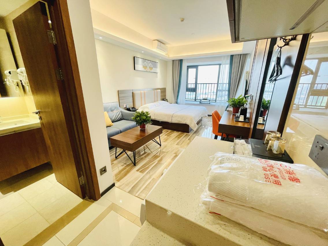 一家高性价比的公寓式酒店,价格经济划算,房间面积很大,卫生干净整洁,屋内设施齐全,附近停车比较方便!!!前台工作人员服务热情,感谢免费升级的观影房,这个大幕布看电影真是爽了!