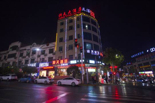 本酒店是浏阳市洞阳镇牛泸路商业街中心最繁华十字路口旁,酒店对面是大型超市购物商城,侧面是夜宵一条街,距蓝思科技南园北园中心地段。吃,喝,玩,乐,出行等十分便利。本酒店全新装修休闲优雅风格,设施齐全,交通便利。三楼设有足浴按摩会所,房间有特色落地窗,情侣房,投影房,服务热情周到,洞天酒店全体员工期待您的光临!