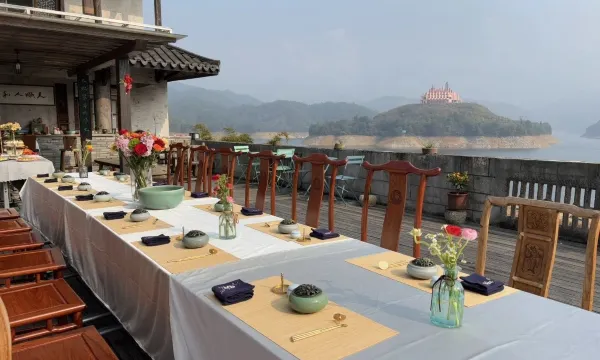 隐龙门一共有五层。目前对外开放的是一、二两层。因为有坡度,大门设在二层,而住宿与相对隐私的大茶室则设在一层和二层。一层有三个湖景大床房,大落地窗玻璃,躺在床上可以看风景;二个是标房,房间虽小且简单,但推开门有个传统中式回廊,可以坐在回廊喝茶看湖。隐龙门二层有两个标房,每个房间一张1.5米和1.2米床。