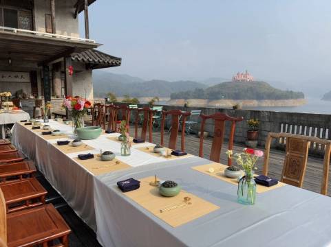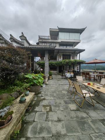 坐在院子里,瓯江一重又一重的山尽收眼底。天晴时,云和湖一片碧绿,青山倒映在水中,令人心旷神怡。下雨时,静看落雨,云雾缭绕,令人叹为观止。