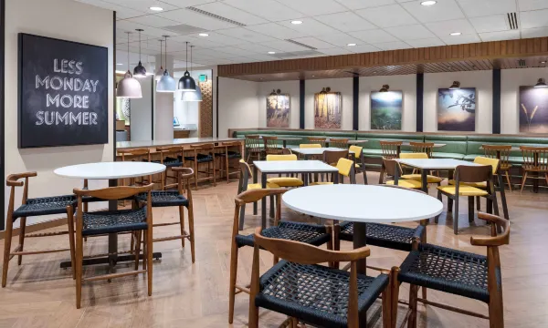 您可以到服务麦德福的马里奥特范菲尔德酒店和套房住客的小吃吧/熟食店随便找点吃的。免费自助早餐供应时间为:周一至周五 06:00 至 09:00,周末 07:00 至 10:00。