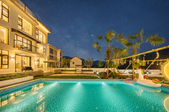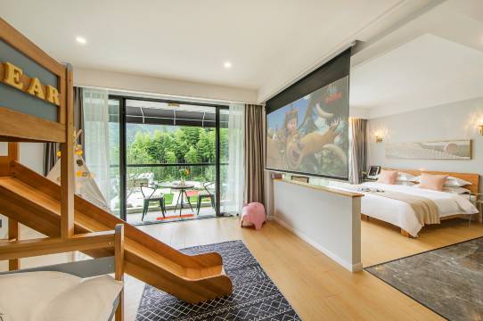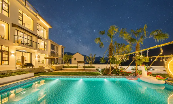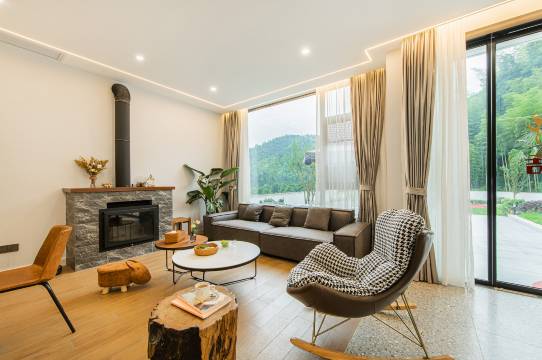 院子集泳池、篝火、大草坪、户外儿童乐园、儿童玩沙区等为一体,内置ktv、会议室、影音、棋牌、桌球、酒吧、儿童乐园一应齐全,匹配DIY厨房(有餐具、洗碗机、传统老灶等)、带充电桩的停车场。可举办公司团建、亲子活动、草坪活动、篝火晚会、各种party……让我们邂逅山野之乐吧~