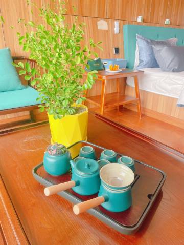 订的家庭房,老板当天免费升级了观景木屋,270°江景,给个大大的赞。房间内干净整洁无异味,设施也都是新的。小院也是布置的精巧美观(可惜忘拍照了),要不是行程已定,高低得多住两天。老板、员工也很热情,给介绍了本地的饭店。还有院里的小修狗,太可爱了,超级可爱粘人,真想抱走。