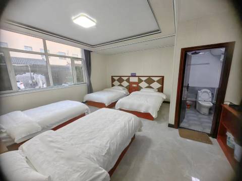 宾馆内设有标准中式大床房,标准中式四人房,特惠房等多种房型供您选择 ,客房内装修简约大方,房间卫生干净整洁,每间客房设施都配备有高速WIFI、遮光窗帘等,让您住的安心,睡得舒心,同时,二十四小时热水及吹风机,在您游玩了一天之后可以洗去一身的疲惫,床单布草等一客一换,均经过严格的消杀处理,为您的睡眠质量以及卫生安全提供了保证。