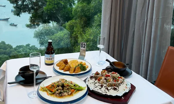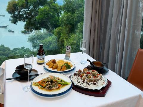 酒店的餐厅可以面对大海吃个早餐,海鲜面加了很多小生蚝,很鲜。