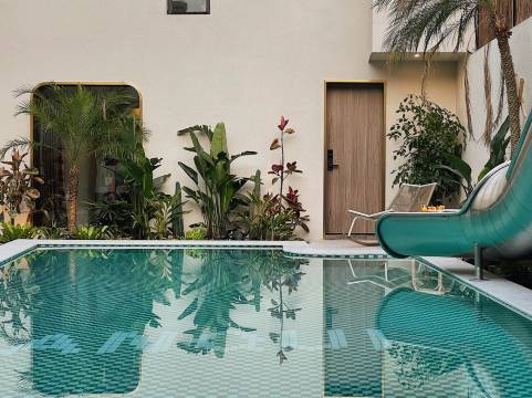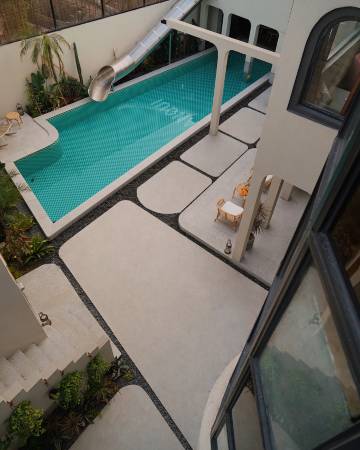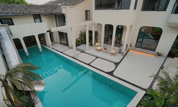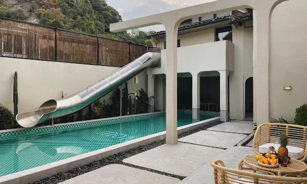 每个房间都很有特色很有设计感房间也够大,特别是泳池拍照很出片,小朋友在泳池玩了一天,很开心。管家服务很好,赠送了下午茶和甜品还给我们免费升了级。管家养的一条狗也很温顺小朋友跟狗狗也玩了半天。附近音乐村很有设计感,晚上附近走一走感觉太好了沿途都是美景。唯一的缺点就是房间遮光不太好早上太亮了不能睡懒觉