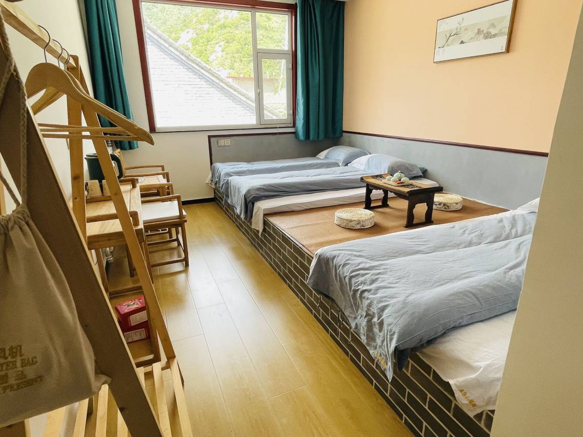 照片没来得及拍,当天晚上十点才入住路上太堵了,第二天四点半起来去五爷庙排队。这家老板跟老板娘服务很好,很客气,入住环境挺好,有地暖晚上睡觉很暖和,卫生也干净