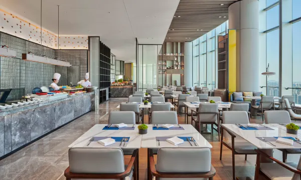厨艺全日制餐厅及大堂吧位于酒店39层,全景落地窗及无敌江景打造长沙网红热门餐饮场所,宾客置身其中领略金楼玉阁大雅至美,对话自然和谐共生。位于3层的青雅中餐厅富有湖湘文化底蕴的装饰风格、精致的菜品和贴心的服务,满足不同商旅人士的需求。