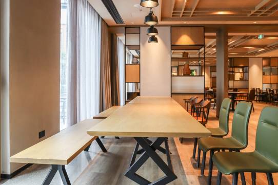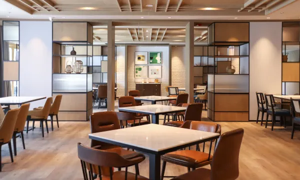 此外,酒店配备约383平方米的特色宴会会议空间,包括1个面积240平方米宴会场地、1个多功能会议室以及1个董事会议室。超清LED显示屏、先进的视听设备及专业的宴会会议团队服务将确保您的活动或会议圆满成功。