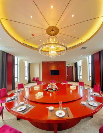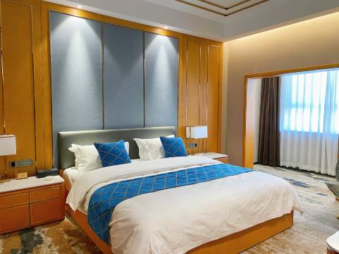 酒店主体楼2幢,占地6100平方。游客接待中心设有商务休闲娱乐区域,总建筑面积8000平方米。拥有学术交流厅、电影放映厅、KTV包房、商务接待区、展示中心、购物中心、会议中心、商务洽谈室、棋牌娱乐室、健身房、医务室、母婴室等多功能配套设施,可同时接待500人。设有特色包厢5间,大厅可同时接纳120-300人就餐。