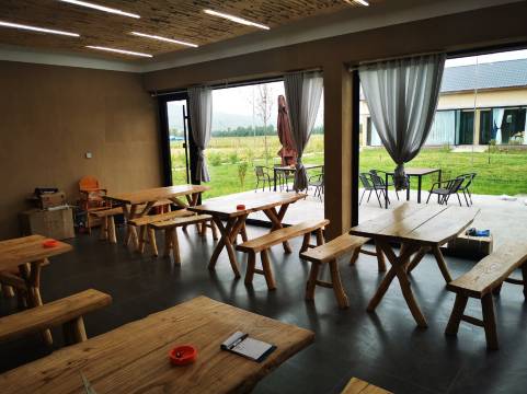 民宿远离主干道,这样清净很多。院子很大,种了很多花,有两只好可爱的猫。还有三头羊。可以和他们拍照。房间挺大的。干净。有落地玻璃。可以看到院里的境。可以在民宿的餐厅点晚餐。番茄炒鸡蛋好吃。