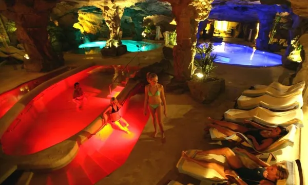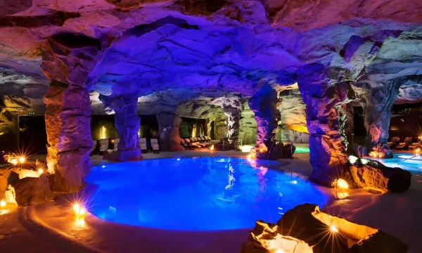 奇幻的洞穴式水疗中心,配有水下音乐!太棒了!