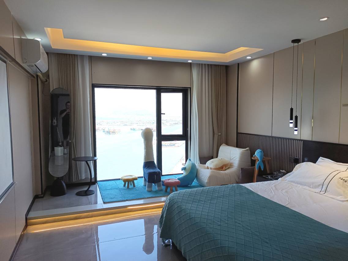 请忽略已经被我搞乱的房间,房间应该是才装修的,虽然外面不怎么样,但是这个房间真的很棒,躺在床上就能看到无敌海景,虽然临街,但是一点都不吵,良心推荐,真的超级棒