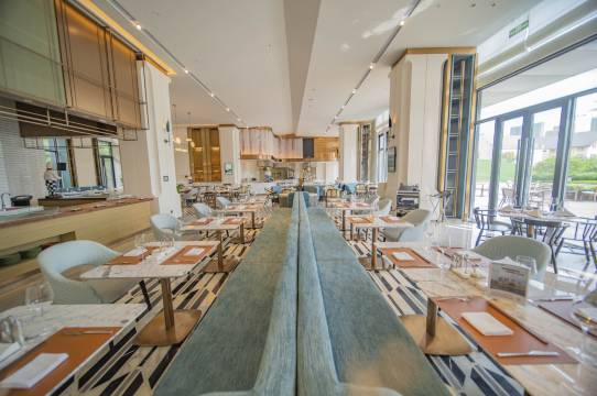 酒店是集度假、休闲、美食、婚礼、会议、为一体的欧式风格度假酒店,位于哈施塔特湖畔,毗邻奥地利小镇。坐拥欧式主题客房多套、800㎡无柱宴会厅、攀岩公园、天空之城网红书店、巧克力工坊、玻璃工坊、3D玻璃桥、蜡像名人馆、等数十项游玩业态。瑞特主题餐厅、邻里小馆、公爵大人的酒吧、爱丽丝主题餐厅、桃源·兰轩公菜馆等餐饮配套。