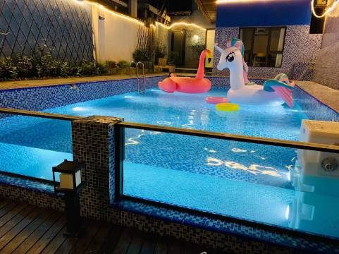 民宿地理位置优越,周围环境优雅,软硬件实施一流。客房设计典雅精致,拥有多种房型以供您的不同需求,干净整洁,设施齐全。公共区域带泳池KTV棋牌茶室烧烤桌球家庭影院烤全羊。