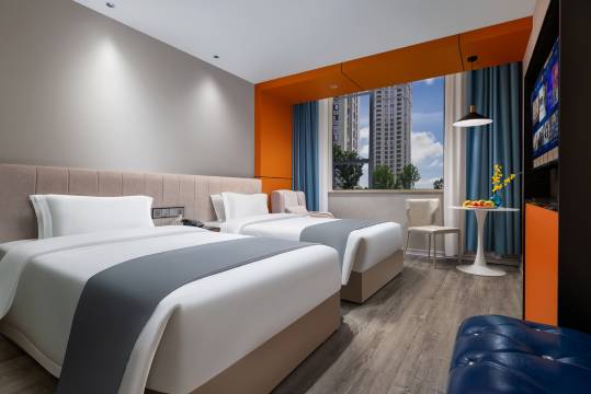 在这边出差,有认识的朋友给我推荐这家酒店,一进酒店就有小姐姐专门迎接,服务态度也非常好,住的房间很迷你温馨,整体感觉还不错,房间干净卫生,虽然这个房面积不大,性价比很高,价格尽管只有百来元但还有双份早餐,更好的是在一步之遥就可以亲吻到我女朋友[呲牙][呲牙][呲牙],酒店的早餐种类也很多,口味也还可以,出行前台小姐姐也会指路,酒店门口的交通出行怪方便的,走路十分钟就到了中天街,夜市,总体来说这家酒店的服务yyds,值得点赞👍