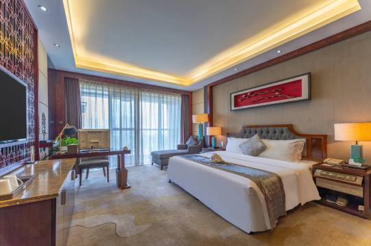 酒店建筑风格以东南亚风情为特色,营业面积约5万平米,拥有客房、独立餐饮酒楼。