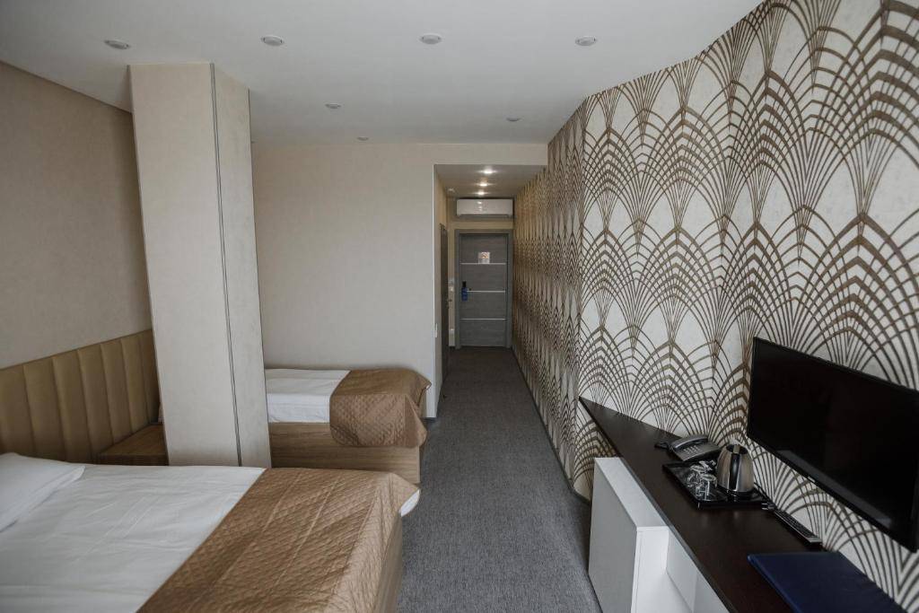 这家酒店离多莫杰多沃机场很近,开车只需5分钟。以这个价位来说,简直是太棒了。酒店旁边就有一家马格尼特超市,步行距离内也有几家餐馆(主要是快餐)。房间非常干净,装修也很新,隔音效果很好,还有遮光窗帘。房间里备有拖鞋、浴袍、电热水壶、杯子和茶包。早餐可以单独预订(500卢布),会送到房间。早餐还不错(有三种选择)。酒店也提供午餐,但我们没尝试。不提供晚餐。