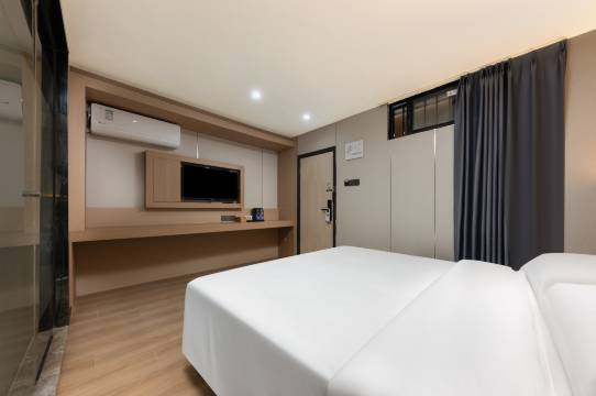 位于著名的SM城市广场旁的台湾街上。入住我们分店可以让您享受到以下几个便利:距厦门站及厦门高崎机场等约10分钟,离著名的厦门大学(思明校区)、中山路步行街、鼓浪屿、南普陀寺、厦大白城、植物园、环岛路、厦门国际会展中心、五缘湾海滨风景区等都约在15分钟车程范围。酒店店门口步行到厦门信息学校约10分钟,有多路公交车直达。台胞可在酒店楼下公交车直达五通码头,地铁1号线乌石浦站距酒店步行10分钟。厦门市中医院距酒店步行5分钟。酒店楼下有自费的天地社区公园停车场,酒店拥有干净、舒适的大床房;温馨的双床房,巨幕投影大床房,巨幕投影双床房,巨幕投影亲子家庭房。10秒速热、24小时恒温恒压淋浴,巨幕投影,分体空调、液晶电视、洗衣房配有洗衣机和烘干机、全覆盖wifi等设施一应俱全。 厦门台湾街店装修风格简约、时尚、大方,别具一格。是您浪漫会友、旅游度假、商务出差下榻的好去处。