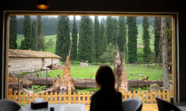 简直是琼库什台最好的民宿! 就在乌孙古道起点 出房间就是草地森林河流! 随便一拍都出片 民宿的饭也很好吃!