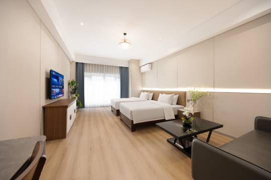 酒店尚在装修整修期间,房间是公寓式的,整体还可以,就是没有早餐,但,价格是民宿级别的,也还算过得去了!