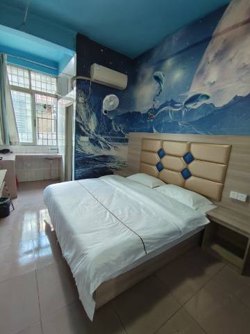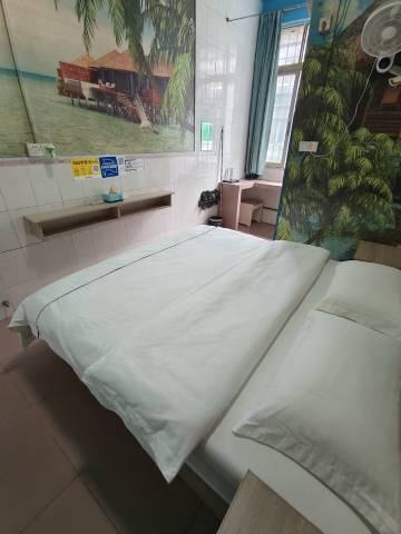 来考试的,大床房69,酒店周边环境就典型城中村,入口也有点瘆人,但房间意外的很不错:设施都很干净,没有异味,床单也挺卫生 空调凉爽 晚上外面大排档也没啥噪音(不过对门byd11点多还在开门大声讲话) 工作人员也挺热心 配图看着简陋但其实体验挺不错的,这个价格要什么自行车,强推