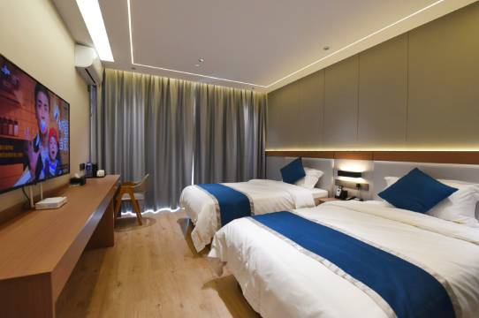 这是一家智慧语音型酒店,房间设备设施可通过智能语音小度控制,体现着现代智能时代对我们生活的改变,假如你在房间,不用您手动操作,直接通过小度,小度打开窗帘,打开电视,打开灯光等等,当您休息时想听首音乐,您就可以说小度,小度听首歌曲,小度是您住店的贴身管家,当您房间没有浴巾,梳子,牙刷等,您就可以说,小度,小度拿一条毛巾,拿一个梳子等等等,前台一时间接到语音留言,安排客房员工送到房间。