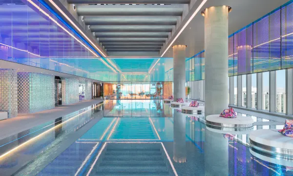 第一次尝试W品牌,体验非常好。窗帘遮光效果一流,床品柔软舒适,空调风力柔和静音可以整夜开启,设计风格前卫体验独特。早餐品类对得起价格。地下停车位置也非常充裕。另外,酒店的泳池风景一绝,健身房亦干净现代。Jelly的服务态度热情周到,和W的风格一样充满活力、注重细节。
