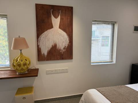 民宿很好找,离沙滩和奥特莱斯都很近。老板人也不错,对面咖啡店就是他们的前台,他们家的咖啡很加分!房间我们非常喜欢,很有格调,里面很新,配套不错,服务超值!强烈推荐!