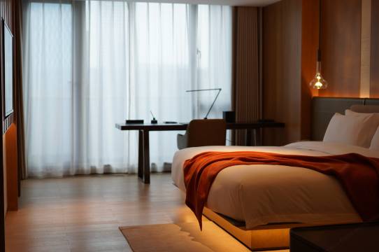 酒店设计感十足,前台客服专业热情,大堂有多个舒适的洽谈区域,房间空间较大,卫生间及大浴缸使用非常舒适。停车场位置足够,也有快速充电脏,值得点赞👍和再次入住。