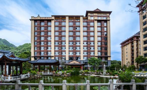 酒店位于伏牛山系木札岭景区,环境优美,温度适宜,夏季平均气温只有22度,负氧离子含量是市区的20倍,是养生养老,休闲度假为一体的高端酒店。酒店集住宿、特色餐饮、茶室等设施及服务为一体;房间整体采用新中式装修风格,房间内均使用纯实木家具、品牌家电、高档床品,让您在置身自然的同时体验**的居住感。