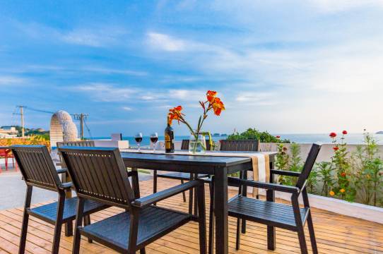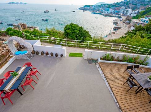 距离码头很近,大约步行几分钟就到了。海景一览无余,平台很美!房间看日出日落都非常满意!老板娘很热情服务很好!