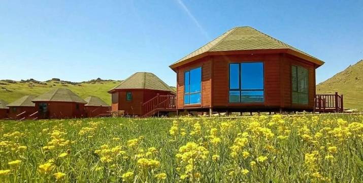 山庄位于布尔津县阿贡盖提草原石人景区(1号)内,依山而建,夜宿云巅,全部采用酒店式的标准来管理。内置有独立卫浴,免费WiFi,酒店从装修、设计、地理位置,可以说是酒店住宿里的佼佼者,贴近自然,位置远离城市,可以独享万亩纯净草原。