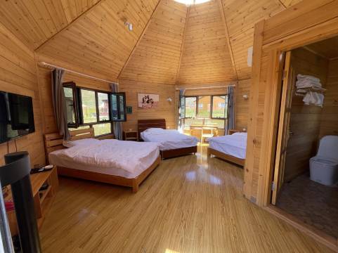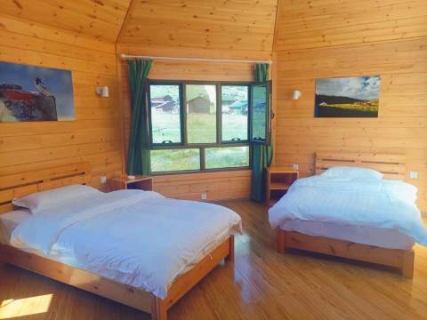 环境很独特,草原中的木屋,夜晚直接在门外拍星空,房间很大,有空调制热也不怕草原夜晚的寒冷,整体设施还可以的。