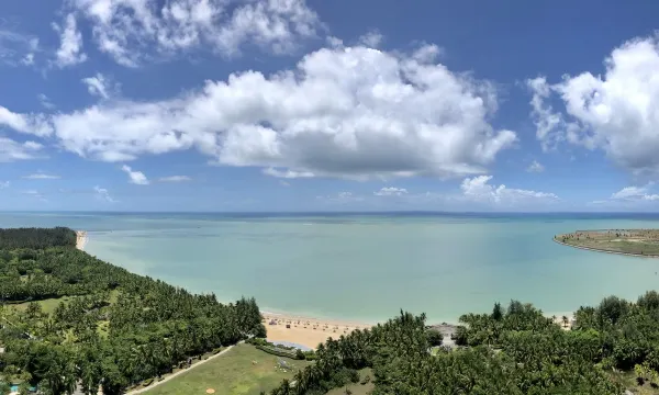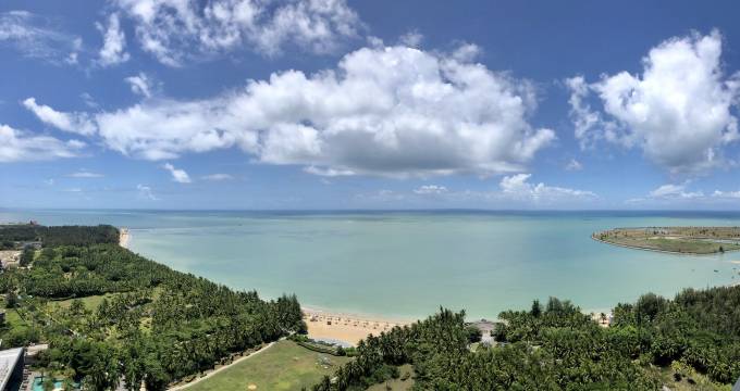 第一次来海南。为了来看南海博物馆,特意在南海博物馆附近订的酒店。开始100多的价格内页报很大希望。入住后,发现50平方是真的有。房间很宽敞,店家还给升级了海景房,美不胜收的海景啊。惊喜的是,一次性的物品都用压缩袋给压缩好了,非常方便。对于海南这么潮湿的城市,压缩物品是非常好的做法。卫生也打扫的很干净。洗衣机、冰箱、微波炉、电磁炉全部俱全。早上起来可以看日出,晚上可以看月光。离沙滩很近,楼下泳池免费。还能在楼下租电动车在海边溜达。电动车是58一天。性价比真实超高呀。服务也很到位,24小时客服随时回答你的问题。不虚此行。
