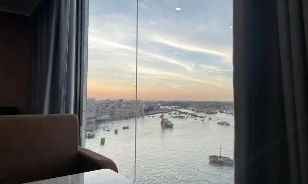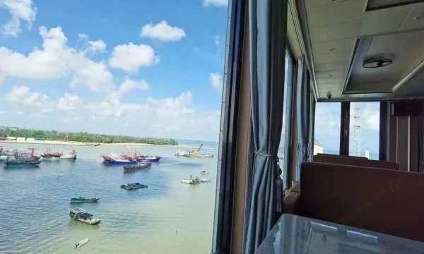 酒店位于巷子里,开车入内需要留意行人,门口有少量位置可以停,运气不错停到了,可以说是离海鲜市场正门最近的酒店了,房间内就可以看到海港渔船,步行200米就可以到企沙长堤,买好海鲜食材酒店9楼就可以加工,价格实惠口味也不错,春节期间服务也还跟得上,早餐品种不算多,很幸运在9楼吃早饭时看到了日出