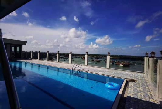 酒店前面是渔港后面是海鲜市场,企沙灯塔长堤就在旁边,自驾游有地方停车,买了海鲜到九楼加工还吃了酒店现做的春卷,美味!