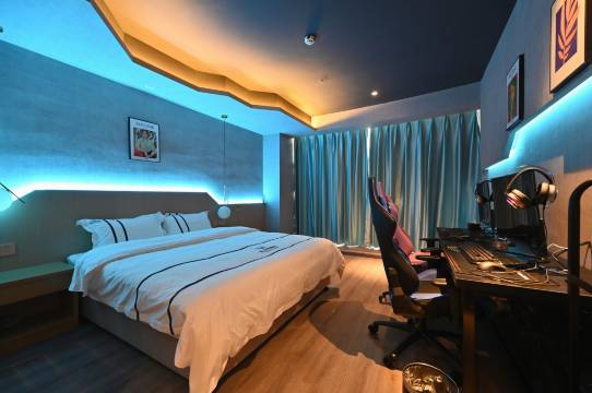 酒店位于酒店位于江夏区大学城,阳光一路鼎元生产车间1楼,地处江夏区中心地带,位置优越,交通便利。酒店装修风格个性独特而不失简约,处处体现人性化的理念。【设备齐全】酒店是电竞娱乐为主的主题酒店,房间均采用环保定制家具、品牌卫浴,时尚健康,酒店房型多样,功能齐全,独立空调,恒定热水,WIFI全覆盖,宽带上网,数字电视一应俱全。设置了二人间至五人间,内设停车场,旨在营造一个舒适、整洁、方便、安心的住宿环境。【交通便利】交通便利,距离庙山火车站约5分钟;距离普安火车站车程约4分钟;距离武昌理工学院驾车10分钟路程。【酒店周边】酒店周边生活便利,汤逊湖;观音岛;藏龙岛;郑州海洋公园;江夏大道。酒店环境幽静,保障您的充足睡眠,是您接待、洽谈、旅游、会友的好去处。酒店全体员工热忱欢迎您的光临!
